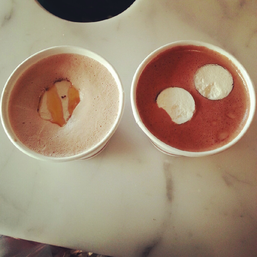I love waking up to cold, misty mornings – they are perfect for walks by the lake and hot chocolate. Saturday morning saw just that, and Stella and I took a walk by the lake, shrouded beautifully in mist, with some snow still on the ground. And afterward, what better way to warm up than with some almond croissants and hot chocolate? It was the perfect day for the start of Vancouver’s Hot Chocolate Festival (which runs from January 19 – February 14, 2013).