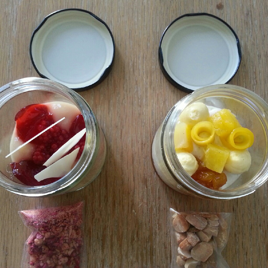And then we have to talk about their desserts in a jar. These are well thought-out (and perfectly executed) plays on desserts we all know and love like black & tan cake, red velvet cake, chocolate mousse and pannacotta. The red velvet, for example, features a beet sponge cake and goat’s cheesecake. I particularly like the black & tan cake, but on Sunday they had two features, one that had a coconut rice pudding, and another that was some sort of crème brûlée deal with raspberries. Show me anything with coconut or raspberries, and there’s no way I’m walking away. So the former was a coconut rice pudding, layered over a rum jelly, and topped with pickled pineapple and mango, and the latter, vanilla custard topped with cacao fruit, raspberries and white chocolate. Heaven in two little jars.