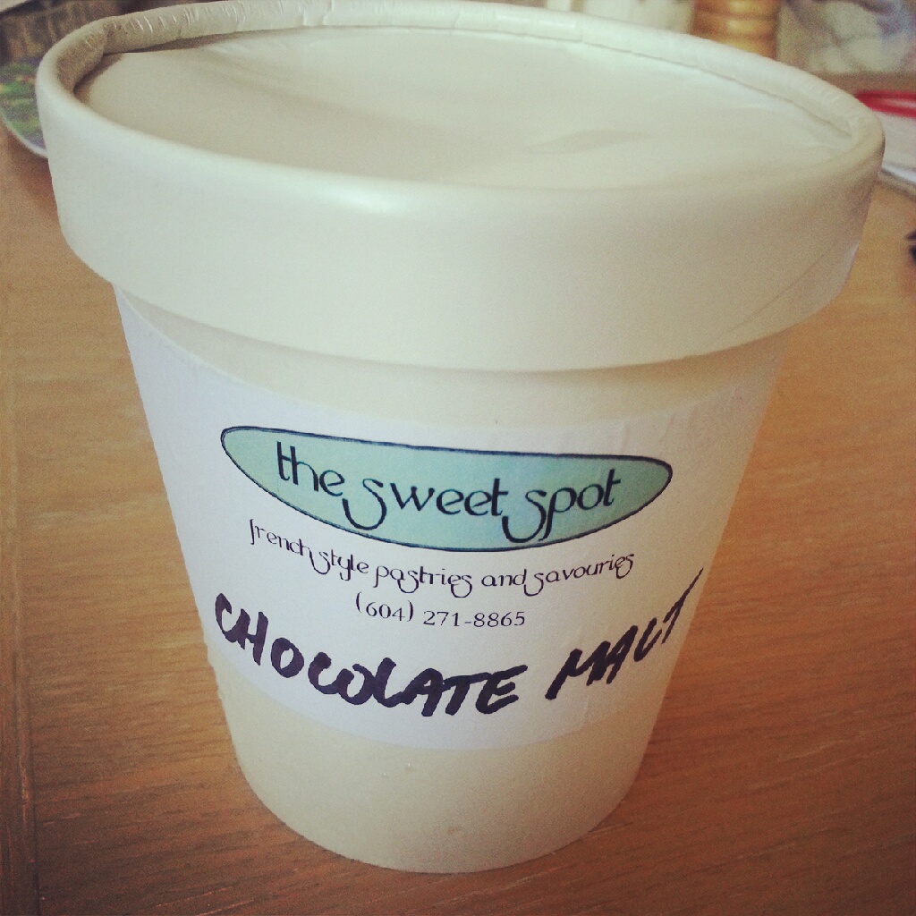 Stella and I have just gotten home from our Sunday walk, and she’s now fast asleep on her little heated bed. And me? Well I’m enjoying a little tub of chocolate malt ice cream. It has the be one of the richest, smoothest ice creams I’ve had – there is very little air incorporated – and the sprinkling of candy-coated fennel seeds is the perfect accompaniment.