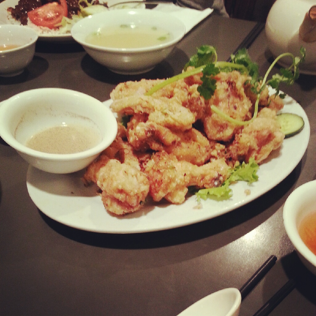 Some friends and I had dinner at Phnom Penh last night, a Vietnamese-Cambodian restaurant right in Chinatown that does some amazing chicken wings that, in my opinion, are rivaled only by Pok Pok’s in Portland. Phnom Penh’s are highly addictive and simultaneously sweet, salty, spicy, garlicky and crunchy. You’ll have to wait awhile for a table; they are almost always insanely busy, but it’ll be worth it, I promise.