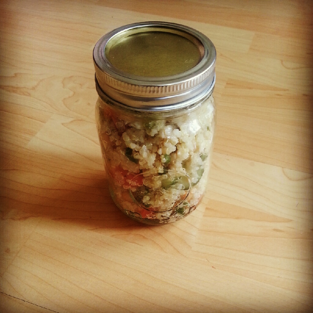 Because of Stella’s allergies, we find ourselves visiting Dr. Maja at Healing Paws quite regularly. On one particular day when we were there around dinnertime, I discovered Café Divano right next door and their fantastic Mediterranean quinoa salad. It’s got a very light dressing, lots of diced bell peppers, cucumber, and tomato, and it’s topped with a sprinkling of feta. And recently, they’ve started serving it in little mason jars – yummy and adorable!