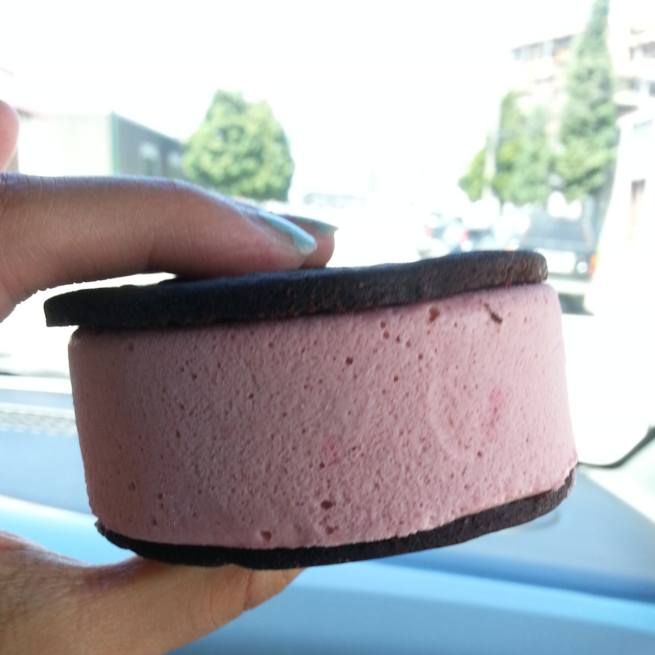 I don’t particularly like black forest cakes, but as an ice cream sandwich, I was intrigued. So I bought a couple of them as well. Cherries are not my favourite, and I avoid them as much as possible (when I make a clafoutis I’ll put in almost any fruit except cherries), so it was a surprise to me when I took a bite and didn’t gag on the kirsch-soaked cherries.