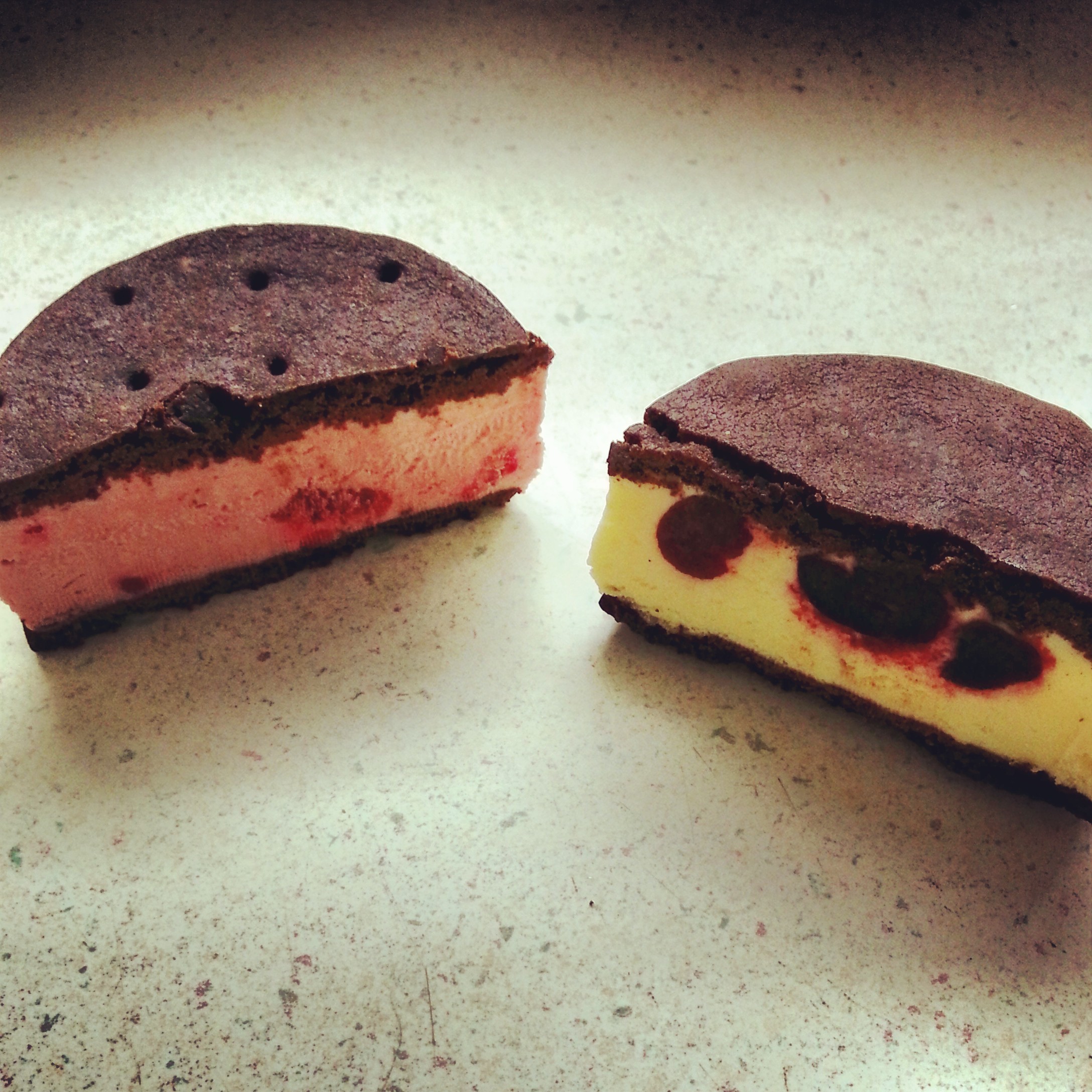 Showing no signs of slowing down, my ice cream sandwich tasting took me back to Beta5 Chocolates, this time for dark chocolate raspberry and black forest. As expected, they were both fantastic, but if I had to choose a favourite, it would have to be dark chocolate raspberry: two thin, dark chocolate cookies sandwiching pink raspberry ice cream with bits of frozen raspberry throughout. Thank god I bought two of each, because they were all sorts of amazing.