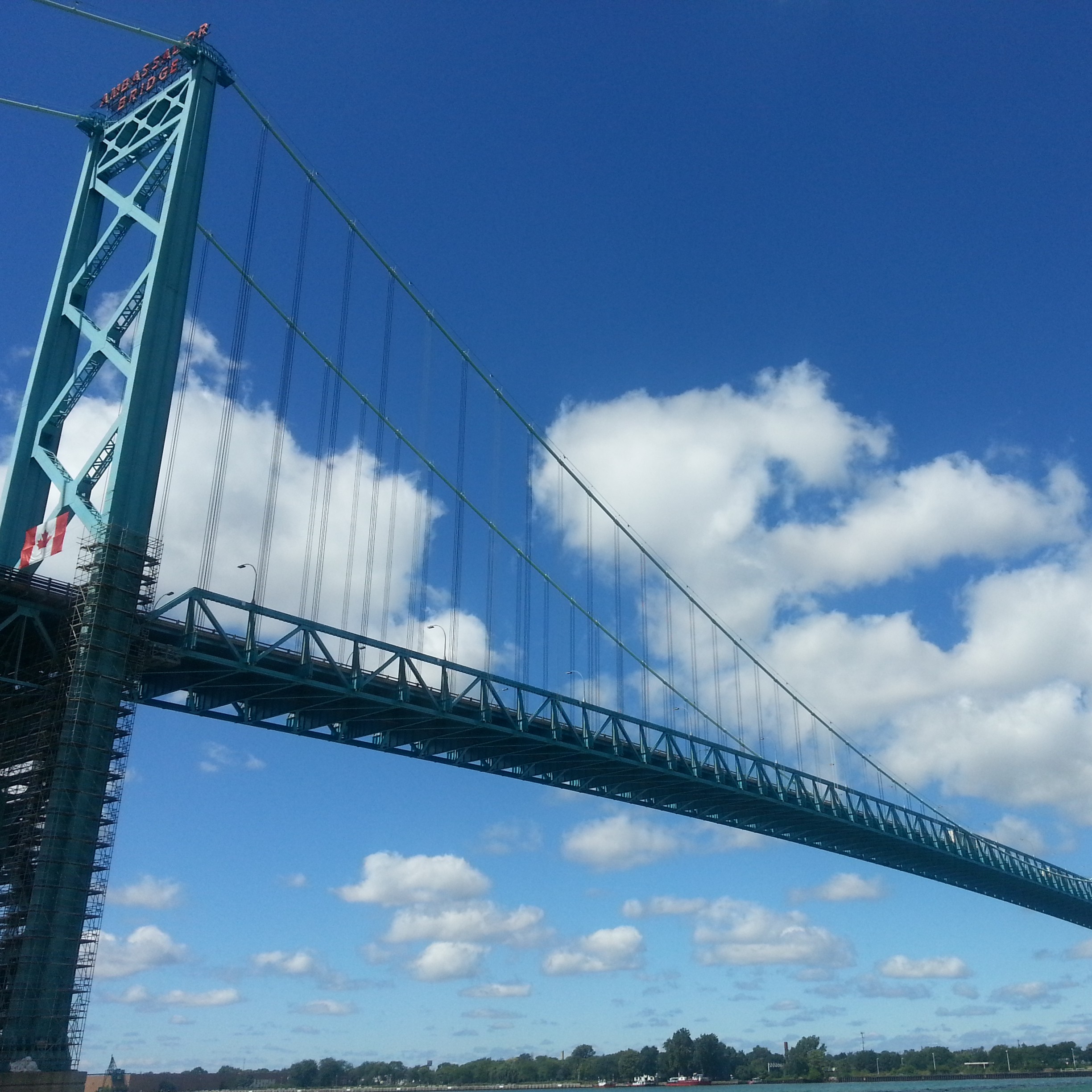 No pictures of a yummy birthday cake, but here are some pictures of the Ambassador Bridge and the Detroit River and skyline. My morning and evening walks are actually quite pretty. Enjoy!