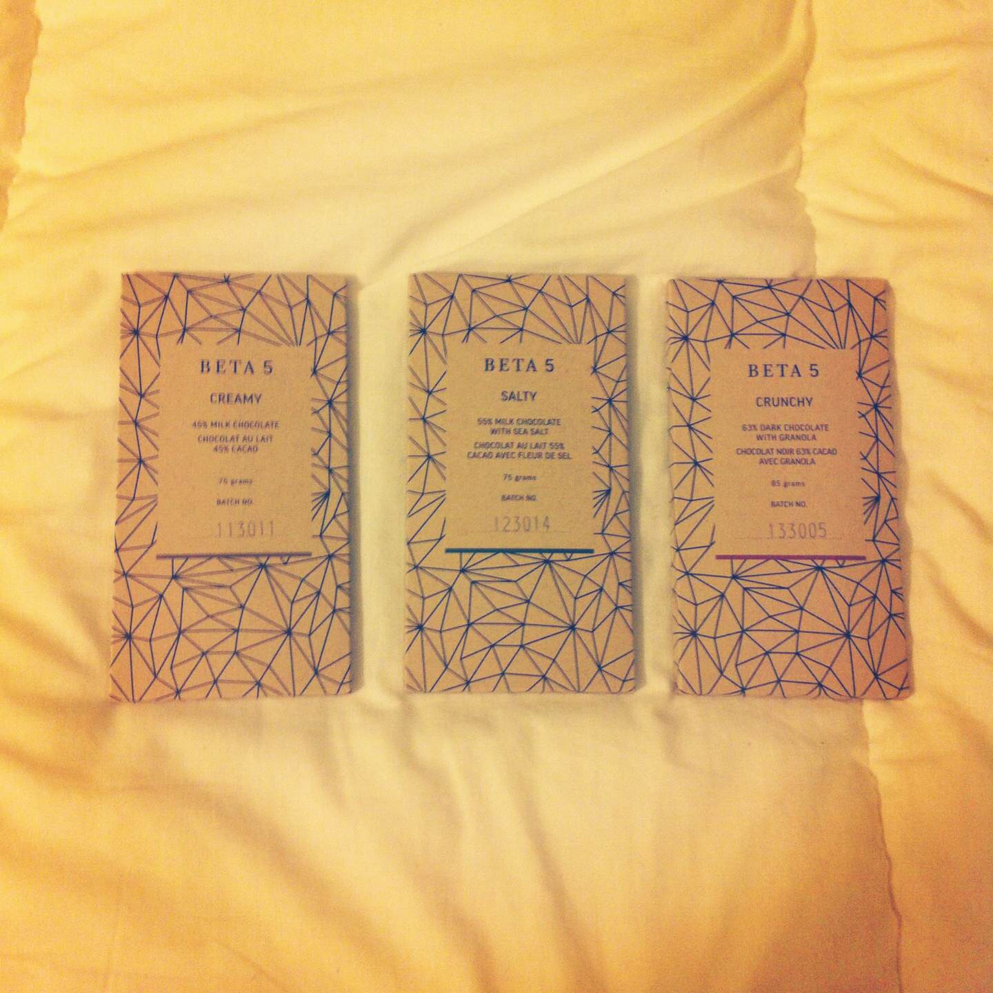 I don’t like the fact that I live 4000 km from Beta5, but thankfully I have parents who don’t mind being tasked with picking up my favourites and sending them over. Currently, I’m set until Christmas in terms of the essential polygon bars – milk chocolate (55%), salty (milk chocolate + sea salt), and crunchy (milk chocolate + granola) – they’ll come in handy come exam time.