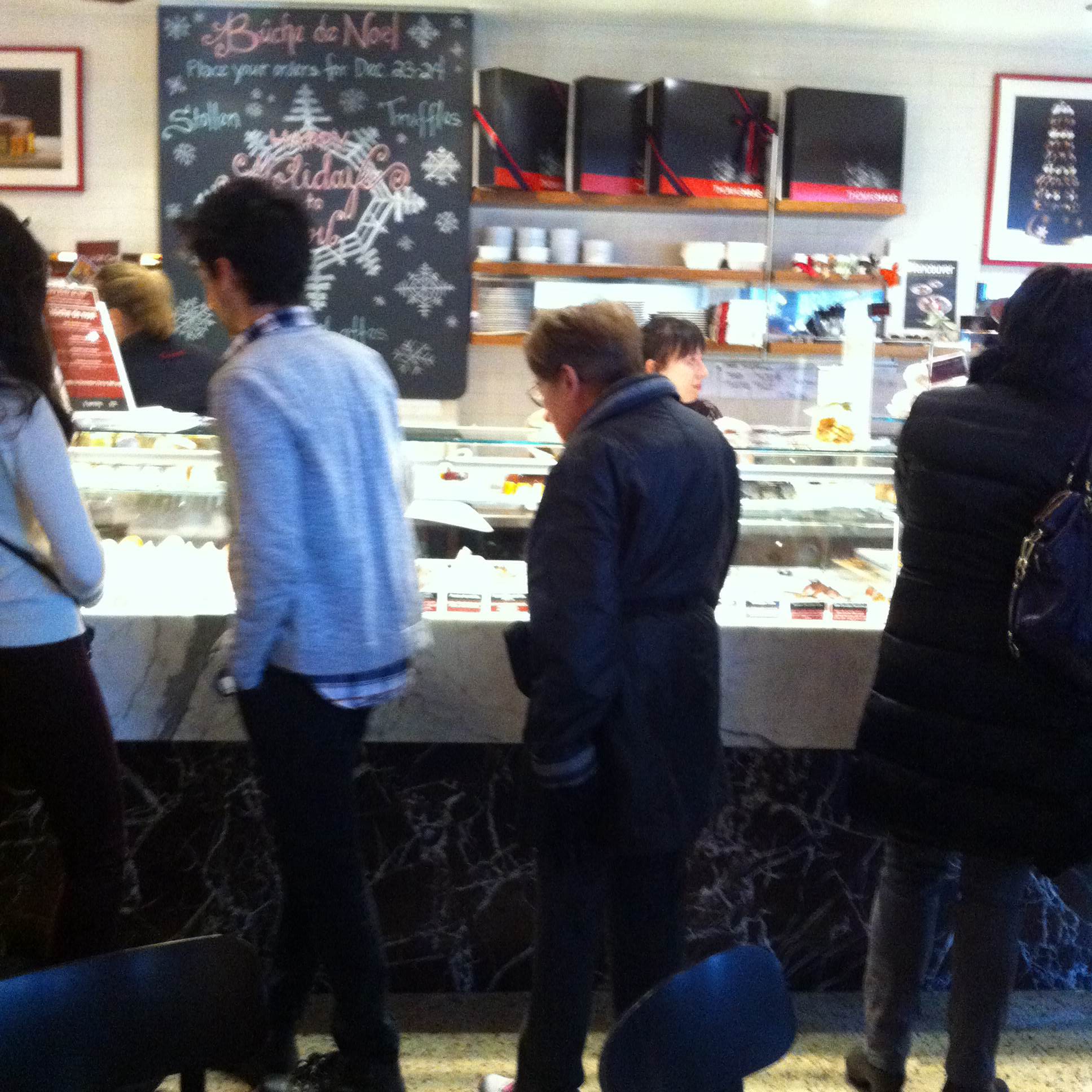It never really feels like Christmas until I find myself in the line that snakes around the little patisserie past truffle trees and Christmas stollen, a cappuccino bar on full speed and customers calling out their macaron and cake selections. My mom ordered our buches de noel today – tiramisu as per usual, along with pear caramel – and enlisted me to pick them up on Christmas Eve. Normally I would try to get out of picking anything up on Christmas Eve, but I miss Thomas Haas so much that for the first time ever, I will brave the craziness of Christmas Eve drivers on the Broadway corridor.
