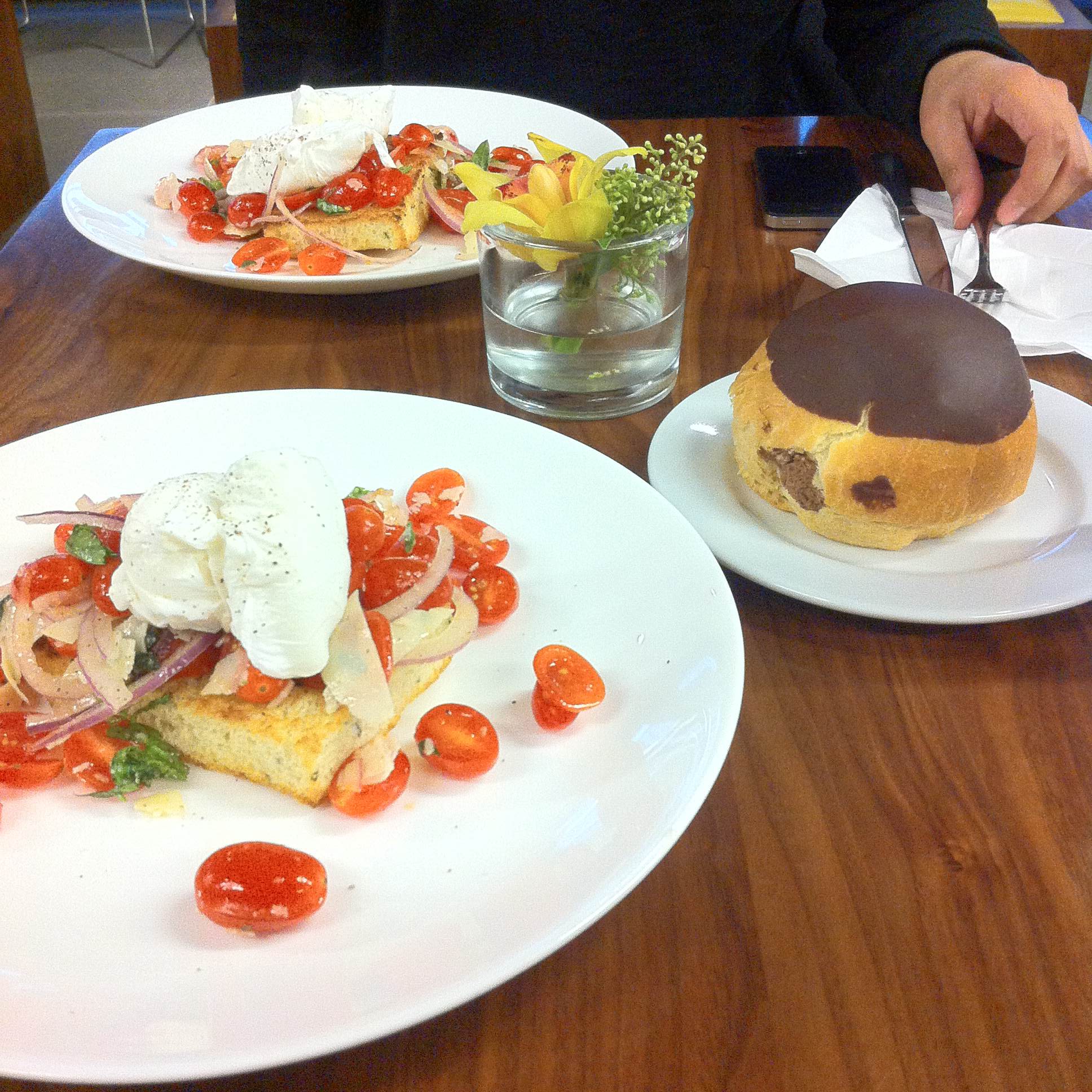 I made time for zeppole and breakfast bruschetta at Giovane – toasted focaccia + grape tomatoes + poached eggs – and a raspberry tart at Faubourg, with some of my favourites.