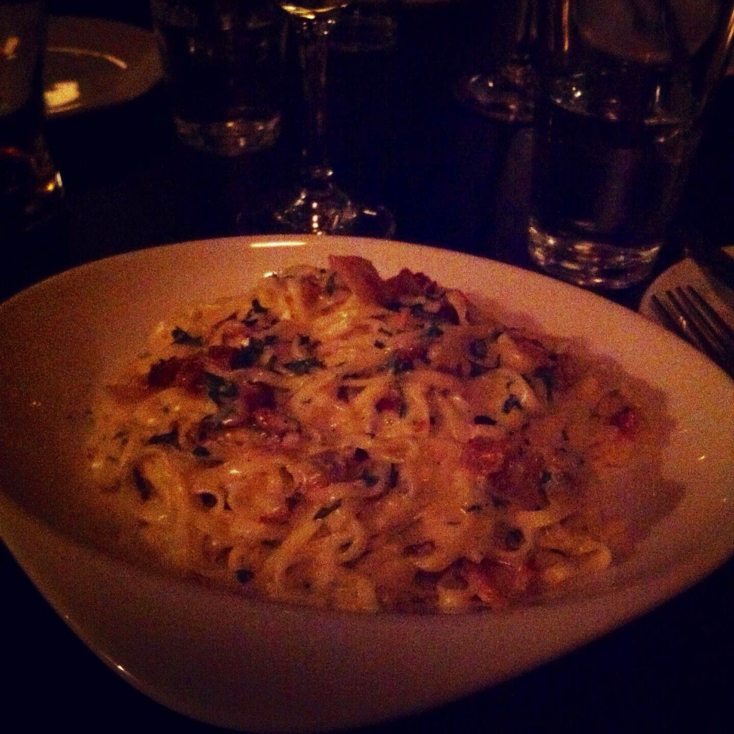 I was missing home today, so dinner at Rino’s Kitchen & Ale House – a farm to table concept restaurant right here in Windsor – was so incredibly welcome. It reminded me so much of Fable. One of our friends discovered the place and we were able to try it out tonight. To start, I had the roasted sweet potato with pulled pork which was amazing. Pulled pork can sometimes be on the sweet side, so on top of sweet potato and maple syrup, I was worried that it might be too sweet. It wasn’t; it was perfect. We also had the charcuterie board which had two of my favourite things, breseola and aged cheddar, among others, as well as ricotta fritters and house salad with strawberries and feta. Then I had the linguine carbonara (with guanciale instead of the typical pancetta), which was good but still had too much cream – I’m still on the hunt for the perfect carbonara which should really just be fresh pasta tossed in egg yolks and parmesan. Others had ravioli with butternut squash, slow-cooked pork on waffles, a meatball sandwich, linguine with braised rabbit and ricotta & spinach stuffed chicken. And finally, for dessert, sticky toffee pudding. I think it’s safe to say we’ll all be back.