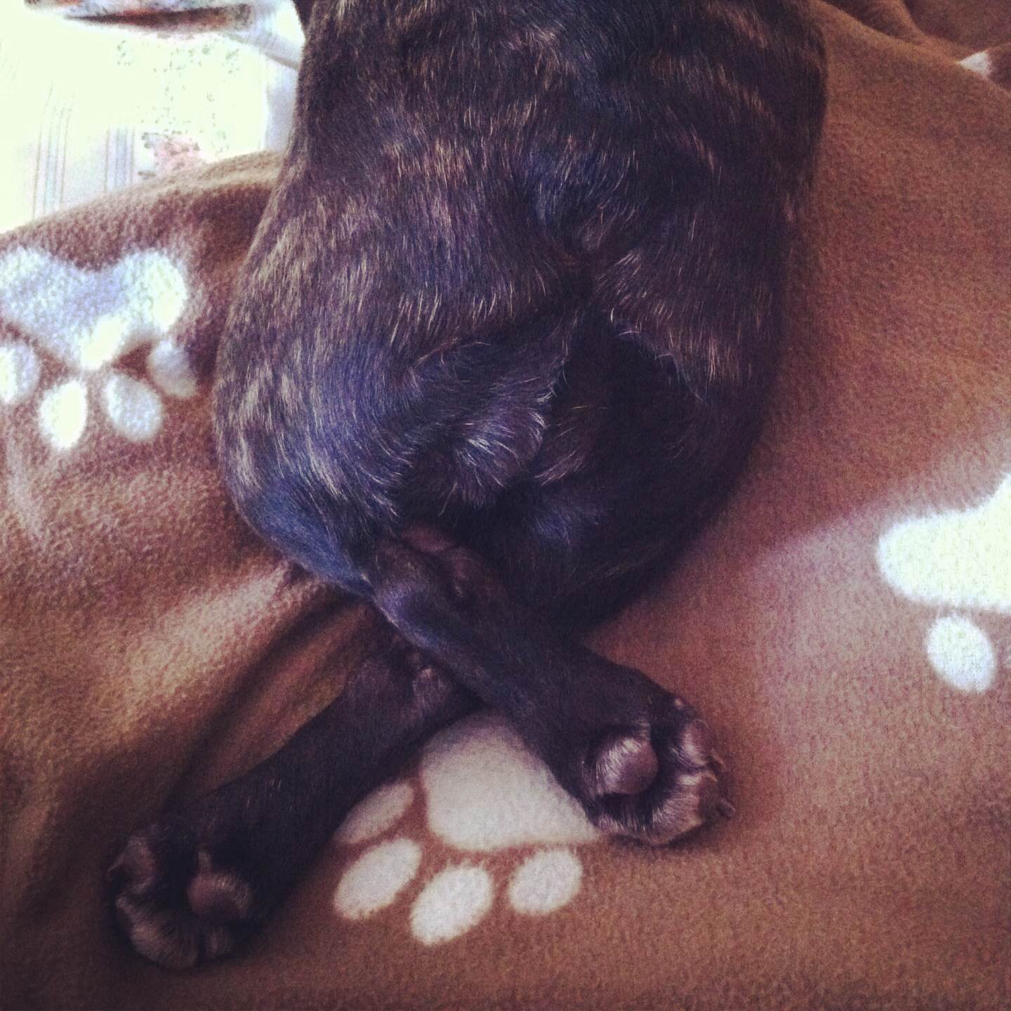 On Stella’s “go pee” walk this morning, she got stung by a bee. On her foot. Which meant she wasn’t going to pee or walk any further. She was going to be carried home, all twenty-five pounds of her. And because she doesn’t react well to bug bites of any kind, we got in the car and headed straight to the vet. She received a steroid shot, as well as a Benadryl shot, and she was a sleepy puppy all the way home.