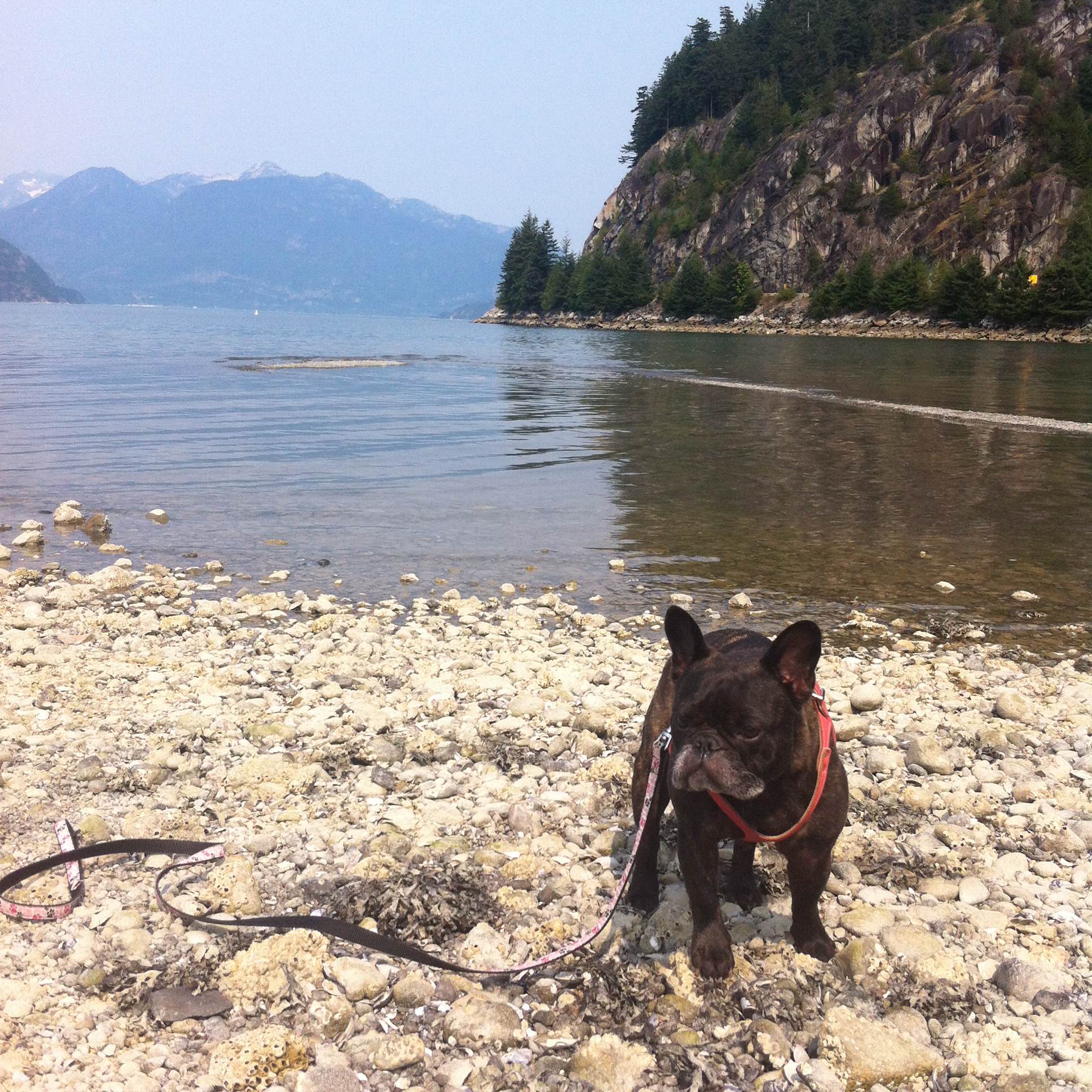 When my aunt and uncle came to visit this past summer, we all went up to Whistler for a few days. I love Whistler – it’s as beautiful in the summer as it is blanketed in snow. Stella is not a fan of long drives, and while the drive up to Whistler isn’t that long (about 2 hours from Vancouver), we make a few stops so she can go pee and get some air. One of our favourite stops along the way is Porteau Cove – it’s a popular scuba diving spot, lots of shipwrecks or something. I’m not actually sure if dogs are allowed there, but we’ve never been told otherwise and Stella loves the water. So we go all the time.
