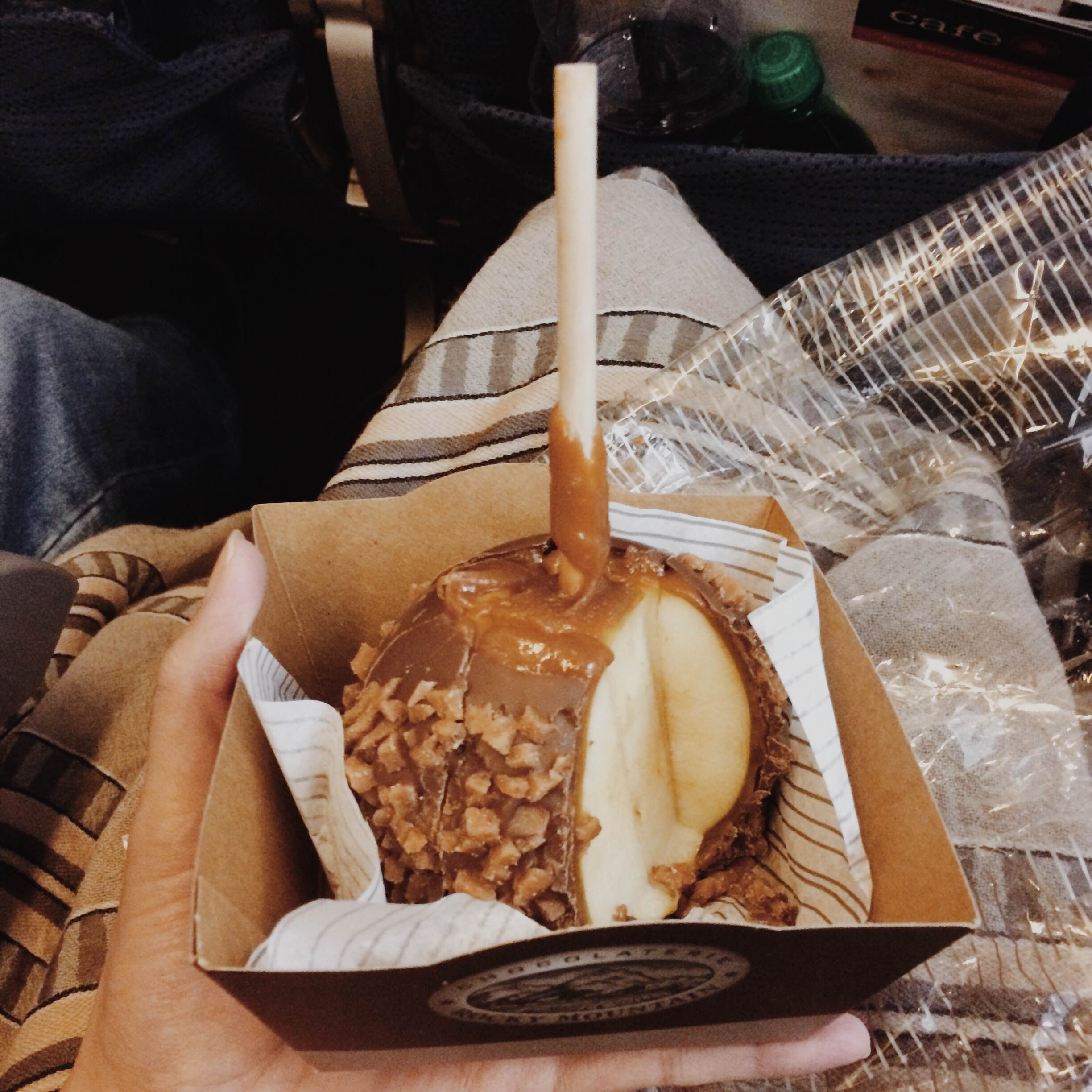 In between all that, we found time for egg rolls and honey garlic spareribs, an open house, naan, butter chicken and butter daal, a Marble Slab ice cream cake, and a bubble tea night. And to pass the time on the plane, an English toffee caramel apple and a bag of Skittles.