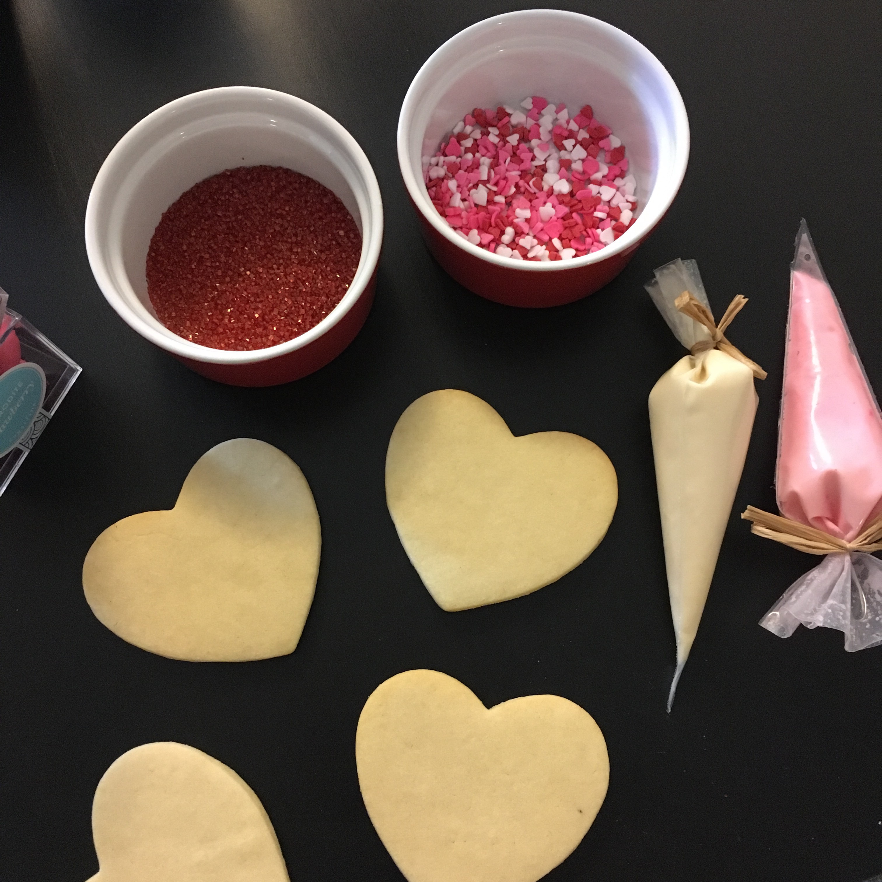 I’m a sucker for pretty, frosted heart-shaped sugar cookies. I love decorating them as much as I love eating them. But if you’re like me, and baking is not quite your forté, cookie-decorating kits are pretty readily available! They generally come with several perfectly baked cookies, icing already in piping bags, and pretty embellishments like heart-shaped sprinkles. This weekend I picked up one of Sweet Flour’s kits at Pusateri’s, and spent a snowy Sunday decorating. It’s pretty satisfying getting to see your own handiwork afterward.
